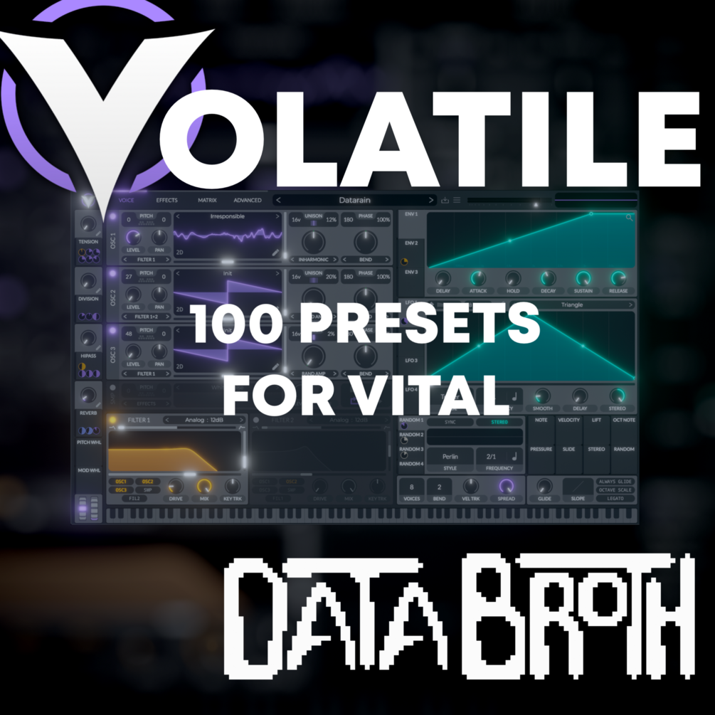Volatile includes 100 presets for Vital, note that these are unique presets not included in any of my packs from the Vital shop